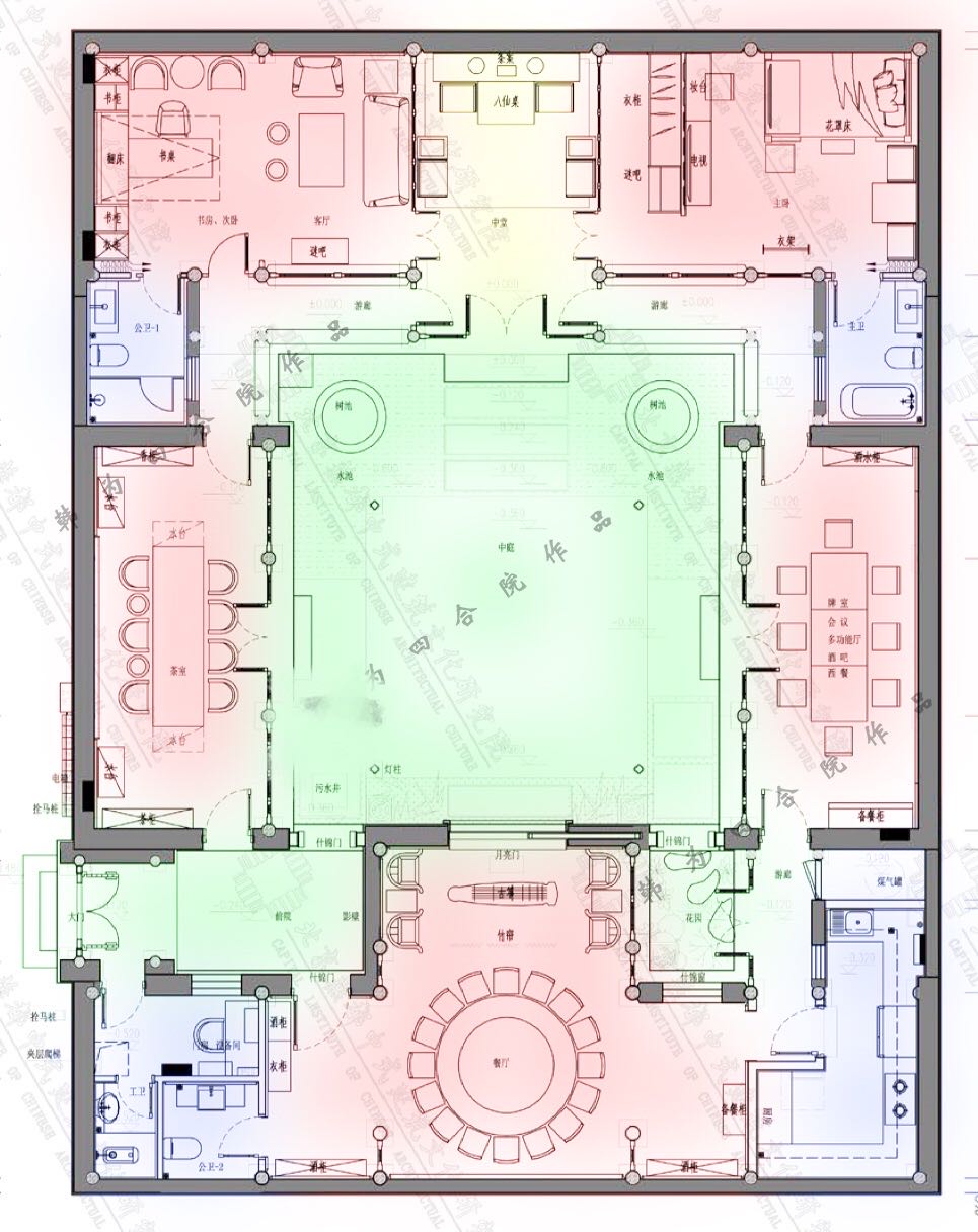 空间功能:中堂、书房、琴房、餐厅、茶室、卧室、厨房、工人房、卫生间等一应俱全,整体院落精装交付。